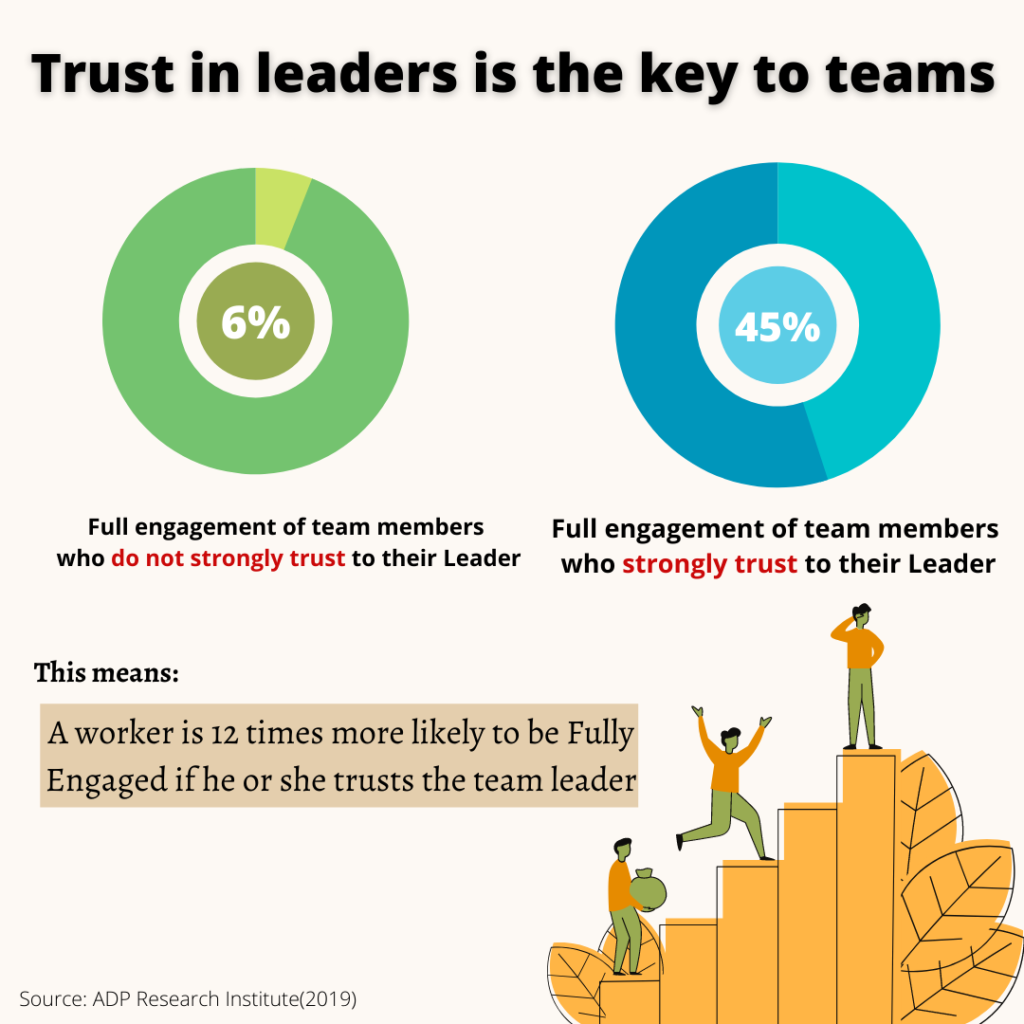 Based on an experiment about the most engaged teams which has been run by the ADP,It was found that the best Engagement was for those team members who trust their team leader.